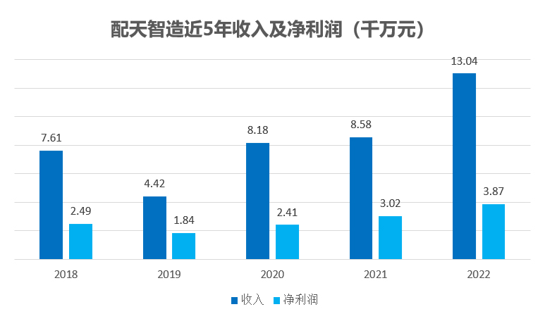 配天智造(832223)2022年度报告显示,报告期内公司实现营业收入1.3亿元,同比增长52%,归属于挂牌公司股东的净利润3867万元,同比增长28.11%。而这家公司全部在职员工仅有107人,人均创收约为122万。